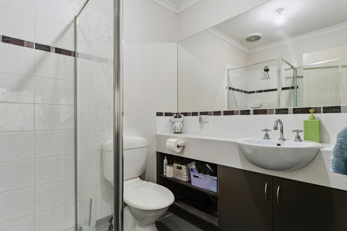 Accommodation comprises two generously sized bedrooms with built-in robes, serviced by a modern main bathroom. The master bedroom is privately positioned and features a walk-in robe and its own ensuite, creating a comfortable retreat.