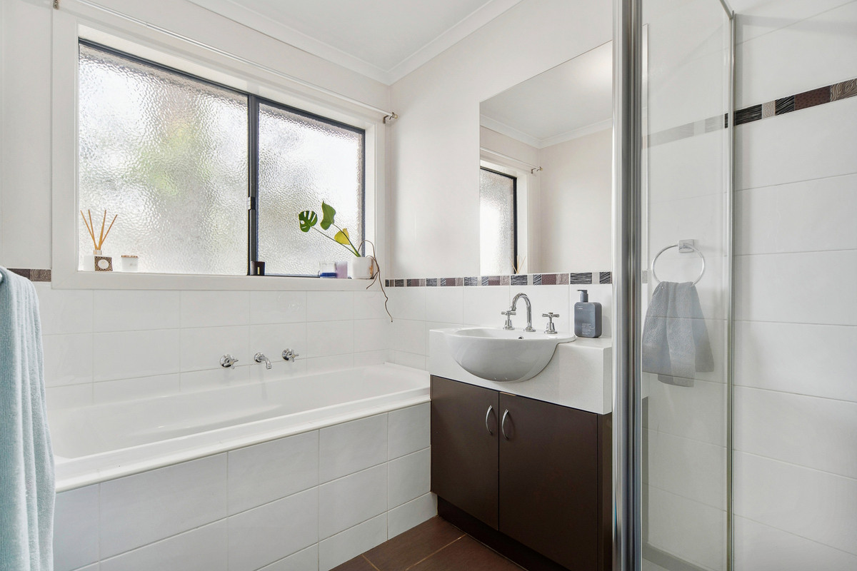 Sliding doors extend the living space to an undercover alfresco area, perfect for year-round entertaining. The private rear yard enjoys a desirable north-western orientation, bathing the space in afternoon sunshine and providing room for children, pets, or a flourishing garden.