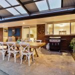 Quality finishes and flooring weave a unified aesthetic throughout, as impressive proportions embrace a light-filled lounge with built-in cabinetry, a family room, dining zone, and open study space. Central to entertaining, a recently renovated kitchen with integrated dishwasher and microwave, a 900mm dual-fuel cooker, and stone benchtops encourages conversation across a breakfast bar, and out into a covered alfresco area that doubles as a carport, when required.