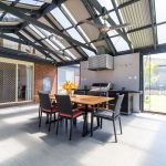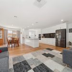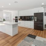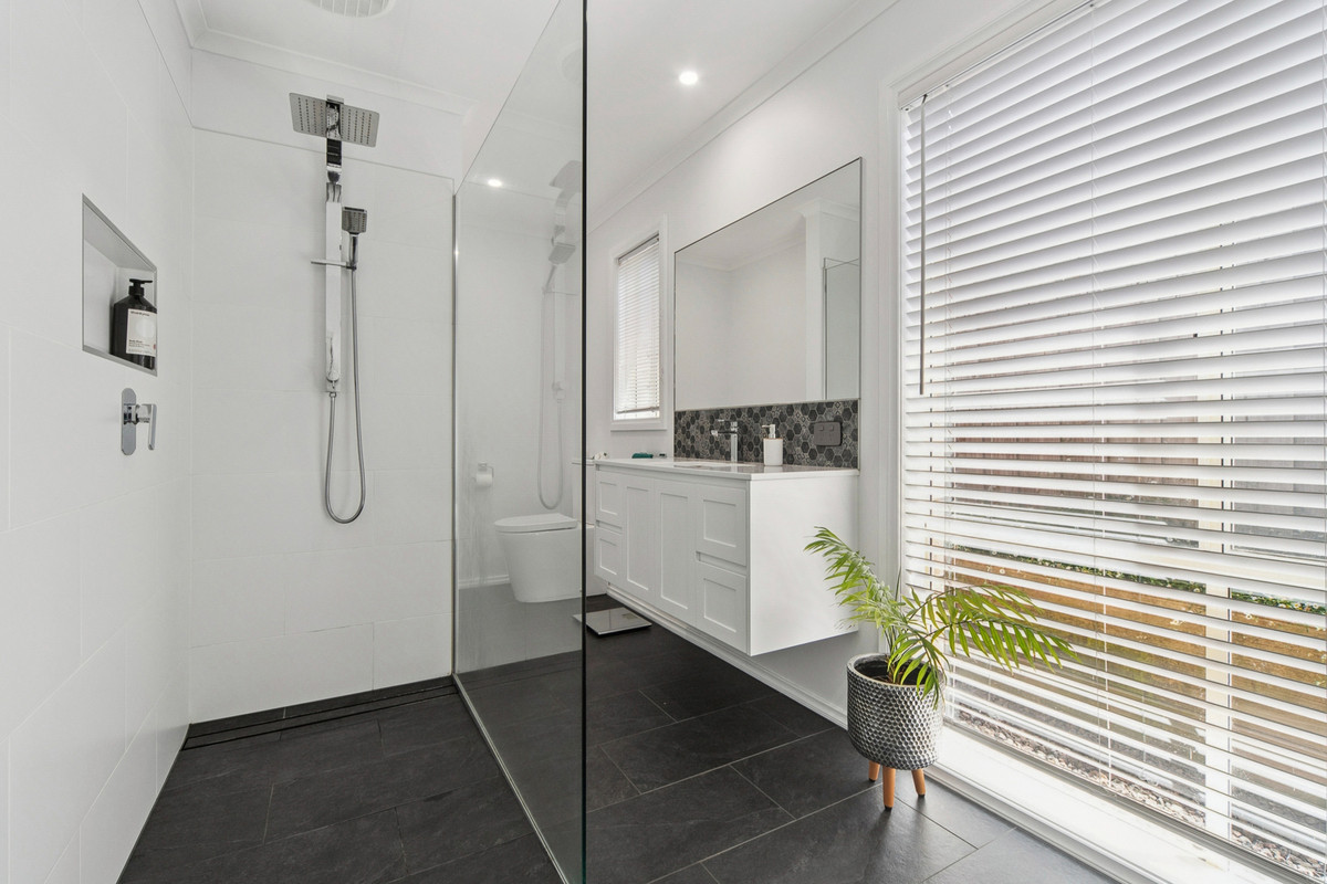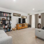 Beyond a wide entryway, modern floors carry family connection across an open sitting, dining, and family room, with a well-equipped kitchen anchoring all three zones. Outfitted with premium appliances, an extensive peninsula and first-grade cabinetry, the kitchen extends into the laundry, before a partially-enclosed alfresco with outdoor kitchen and track blinds, supports indoor-outdoor hosting capabilities.