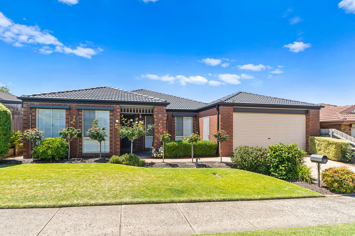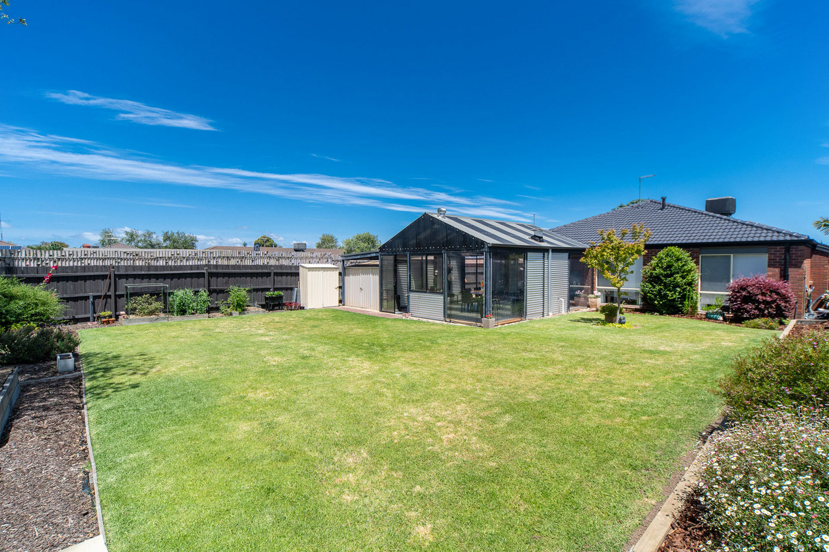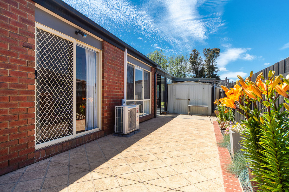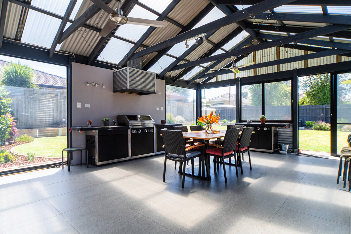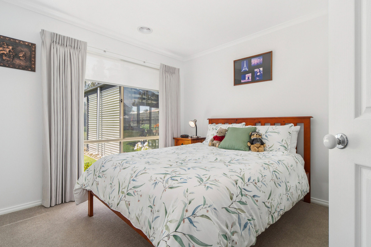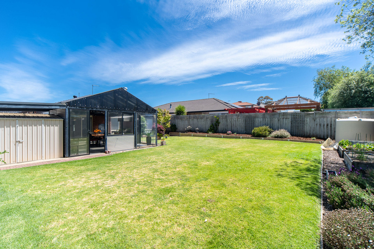 A front formal lounge sits alongside a private master bedroom, complete with renovated ensuite and comprehensive walk-through robe, before three secondary bedrooms and a main bathroom occupy a rear accommodation wing, perfect for kids. Accompanied by gas ducted heating, split-system air conditioning, and evaporative cooling, the home continues its line-up of features with established rear gardens, a double garage with drive-through access to multi-vehicle tandem parking, water tank, and multiple outdoor sheds. Set within easy reach of Carrum Downs Plaza, Flinders Christian College, public transport, and local parklands.