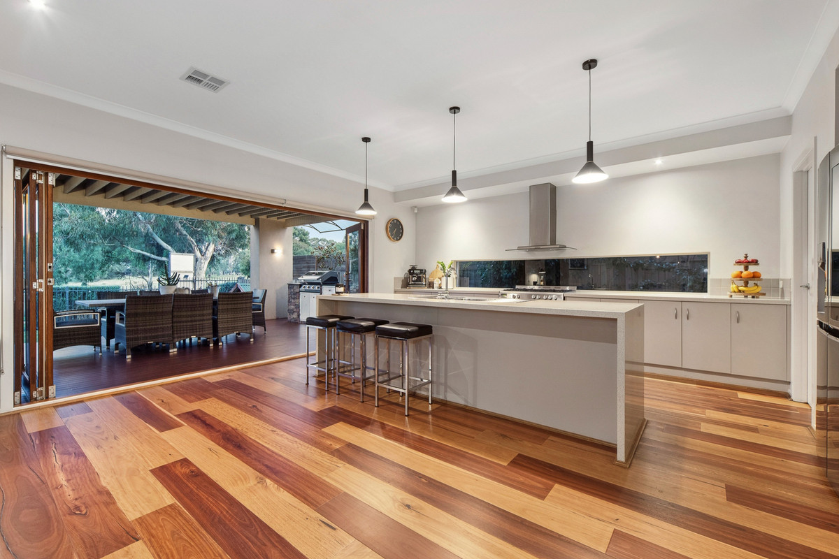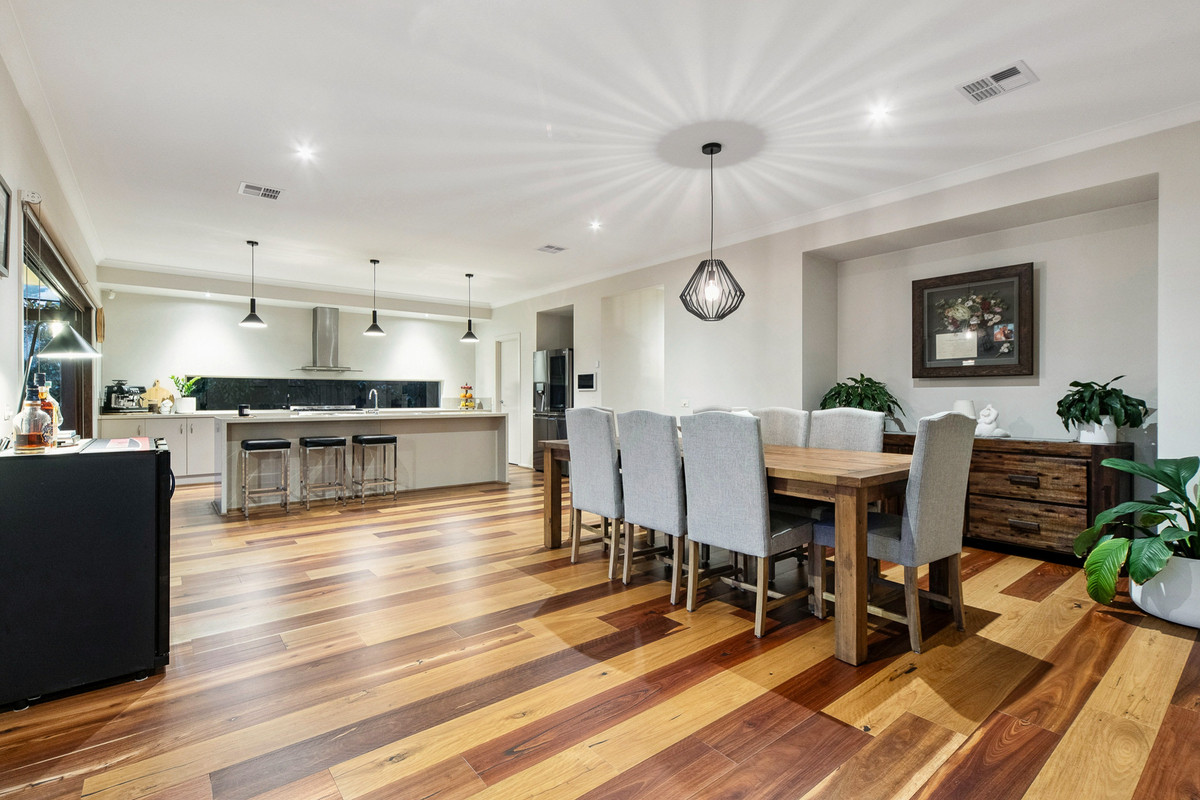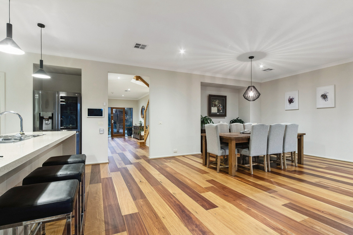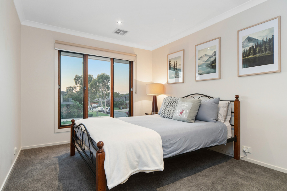 A delicate material change indicates the transition into accommodation, with an upstairs wing dedicated to quiet retreat. Secluded and serene, the master suite features a walk-in wardrobe, luxurious spa-ensuite with double vanity, and private access to the rear-facing balcony. With three additional bedrooms including one with a private balcony, a main bathroom, powder room, and double garage with drive-through access, The home features MyZone smart Refrigerated Cooling & Heating, allowing individual room temperature control, along with a gas log fireplace, split-system air conditioning, stunning solid timber floors, ducted vacuum, and an alarm system. Positioned within a quiet enclave, moments from Carrum Downs Secondary College, Banyan Fields Primary School, and Carrum Downs Shopping Centre.