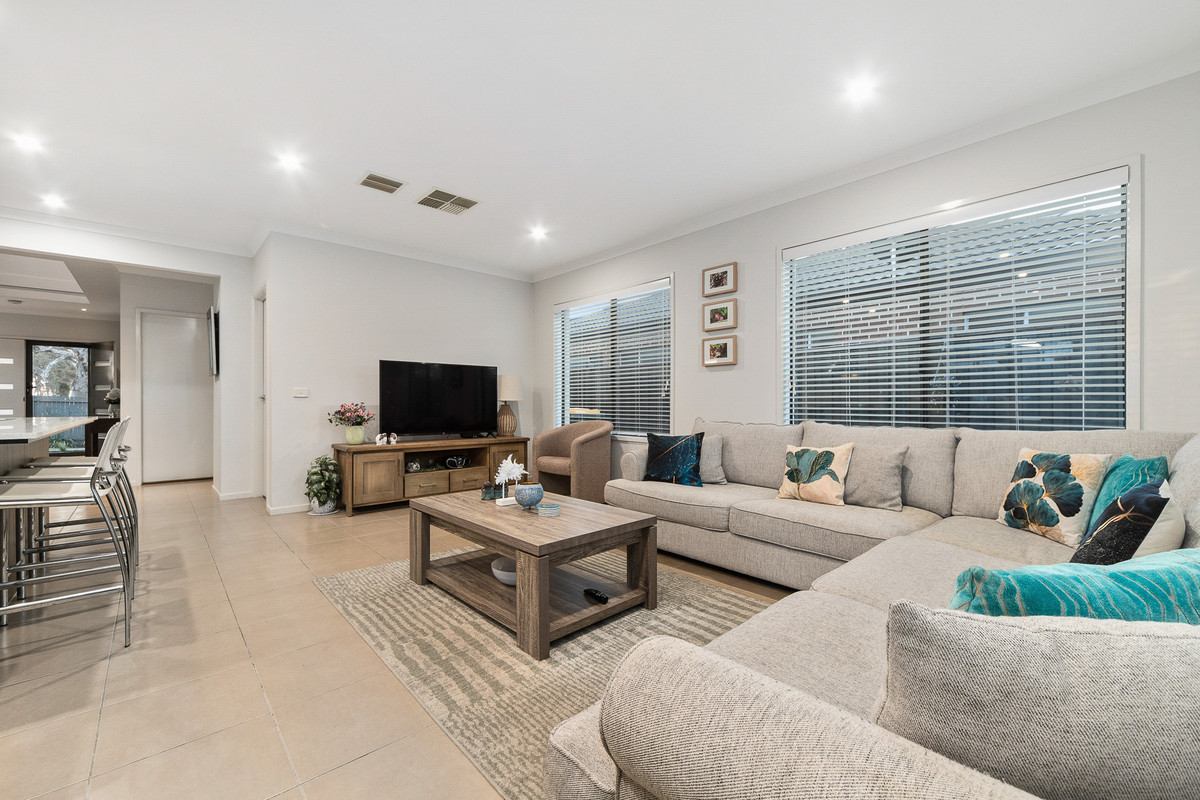 Four bedrooms and two light-filled bathrooms keep accommodation to the first-floor, highlighted by the master suite with generous proportions, a walk-in robe, and ensuite with dual vanity. Accompanied by gas ducted heating, evaporative cooling, and a 15-panel solar system, the home features a guest powder room, dedicated laundry, a large rear garden in full bloom, garden shed, and a double garage with internal access. Situated opposite parklands at the end of a quiet cul-de-sac, only moments from Carrum Downs Secondary College, Carrum Downs Shopping Plaza, Banyan Fields Primary School, and within walking distance to public transport