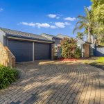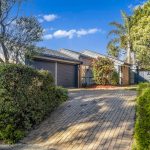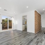 Elevated above the road and discreetly positioned behind a double garage for enhanced privacy, the home welcomes you with fresh interiors, where modern flooring pairs seamlessly with a crisp neutral palette, enhanced by an eye-catching exposed brick feature wall upon entry.