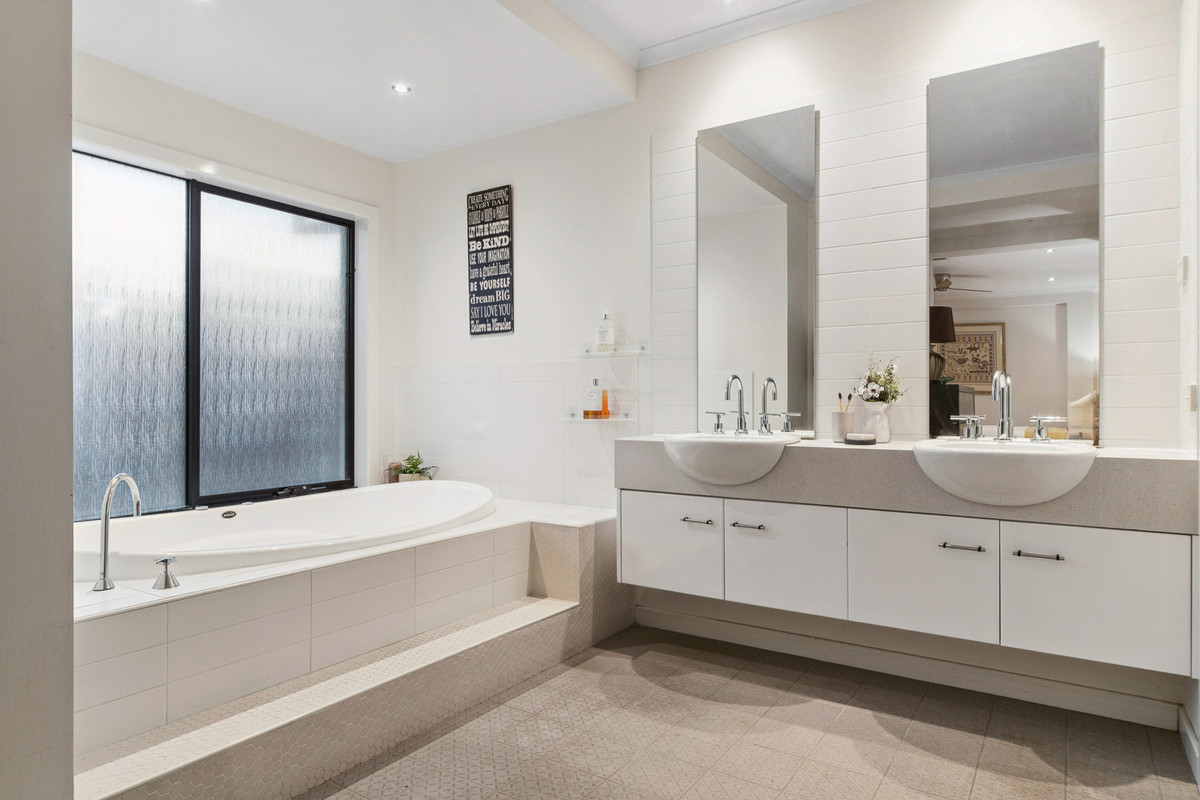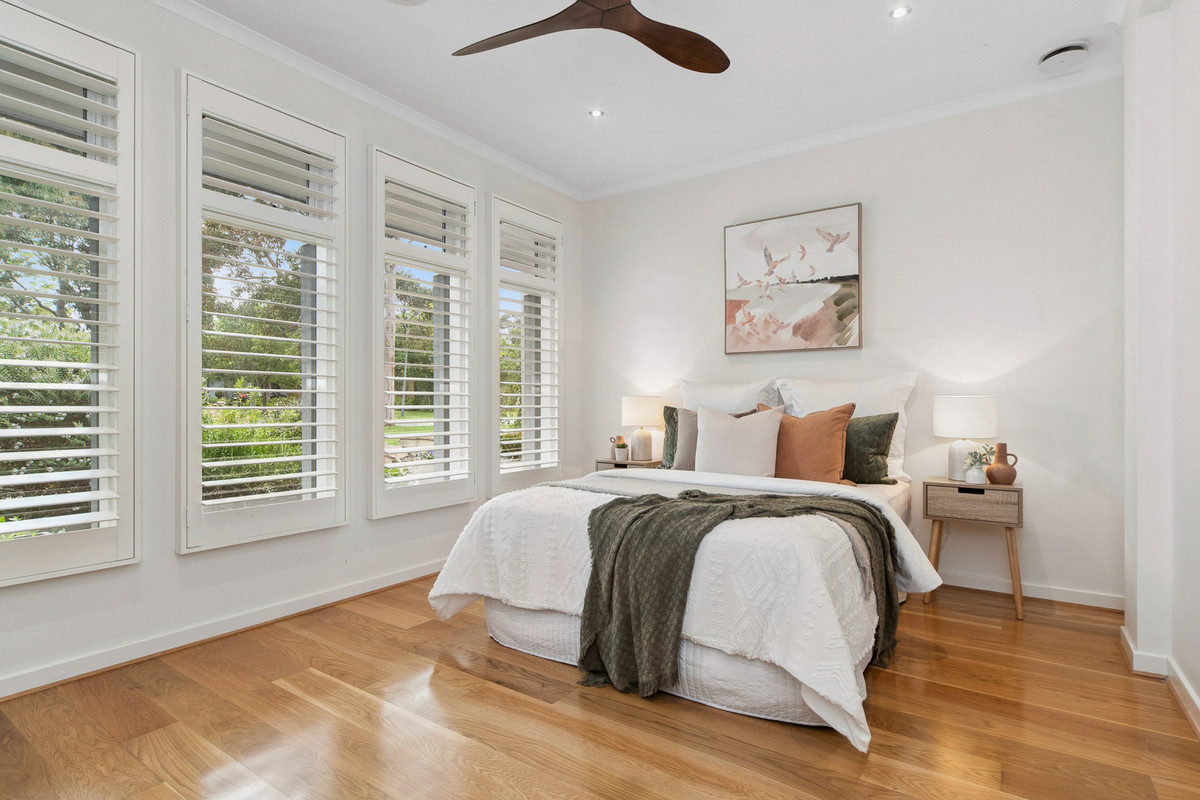 Generous proportions continue across four generous bedrooms and two bathrooms, highlighted by a grand master suite with fully-fitted walk-in robe and bright ensuite. A fifth bedroom to the front doubles as a third living zone for children, while an adjacent home office keeps things functional. Featuring twin Heat & Glo gas log fireplaces, gas ducted heating, evaporative cooling, a HRV system, ceiling fans, 6.6kW solar system, and an automated irrigation system, this impressive family home provides peace of mind with a newly updated Bosch alarm system, panic buttons, and a double garage with internal access.