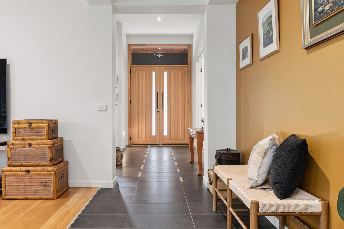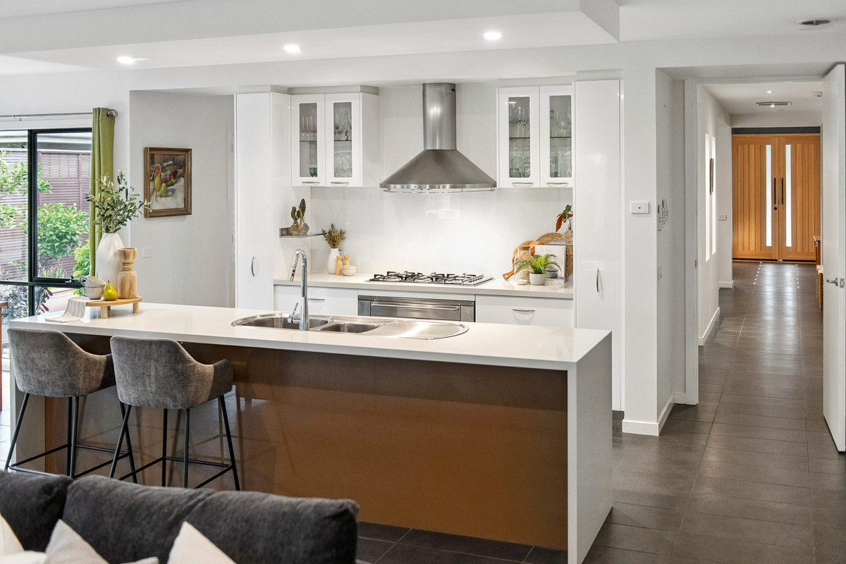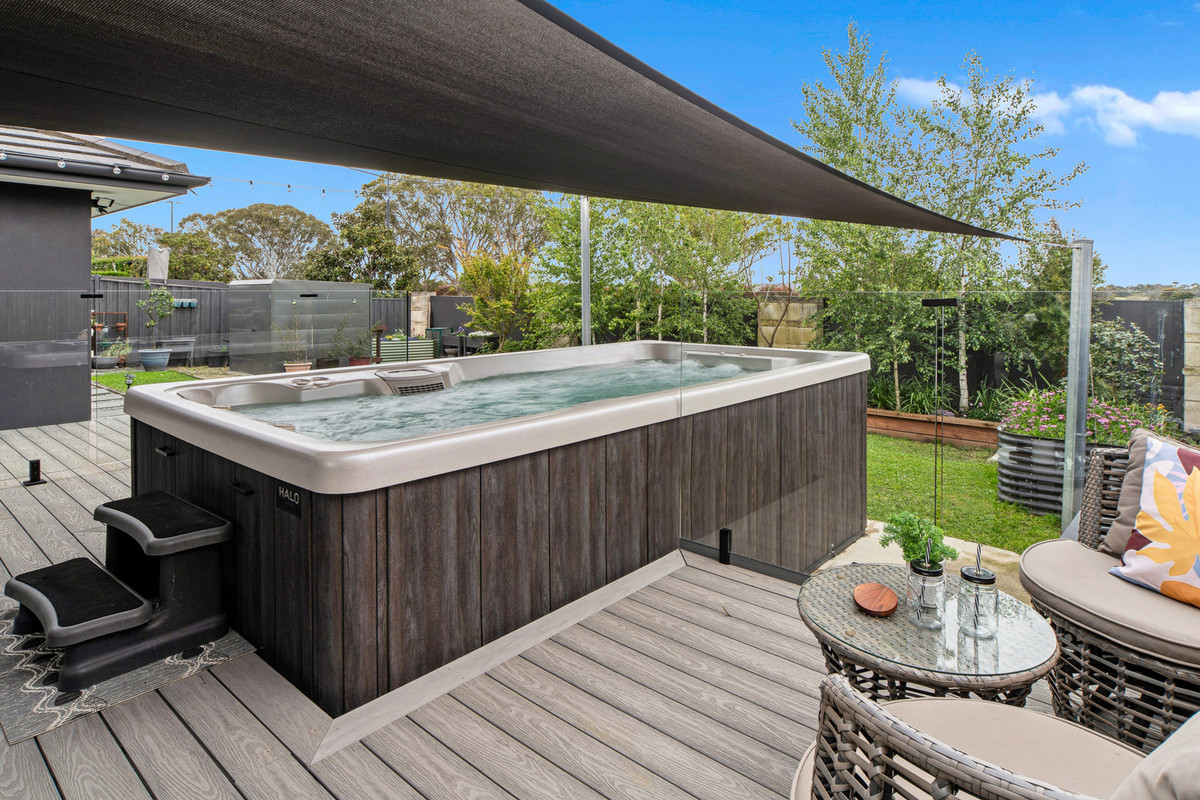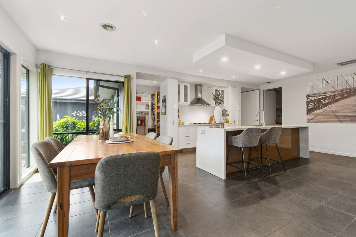 Surrounded by sweeping vistas of neighbouring farmlands that dance with the colours of stunning sunsets, it keeps a seamless flow to entertaining with an open rear social domain supported by an intimate formal lounge. Accompanied by an internal kitchen with 900mm Smeg appliances and a generous walk-in pantry, entertaining continues outside to a covered alfresco, sun-kissed deck, and a Halo swim spa with Chilli heating system.