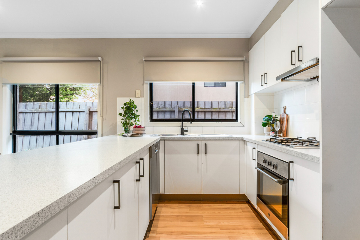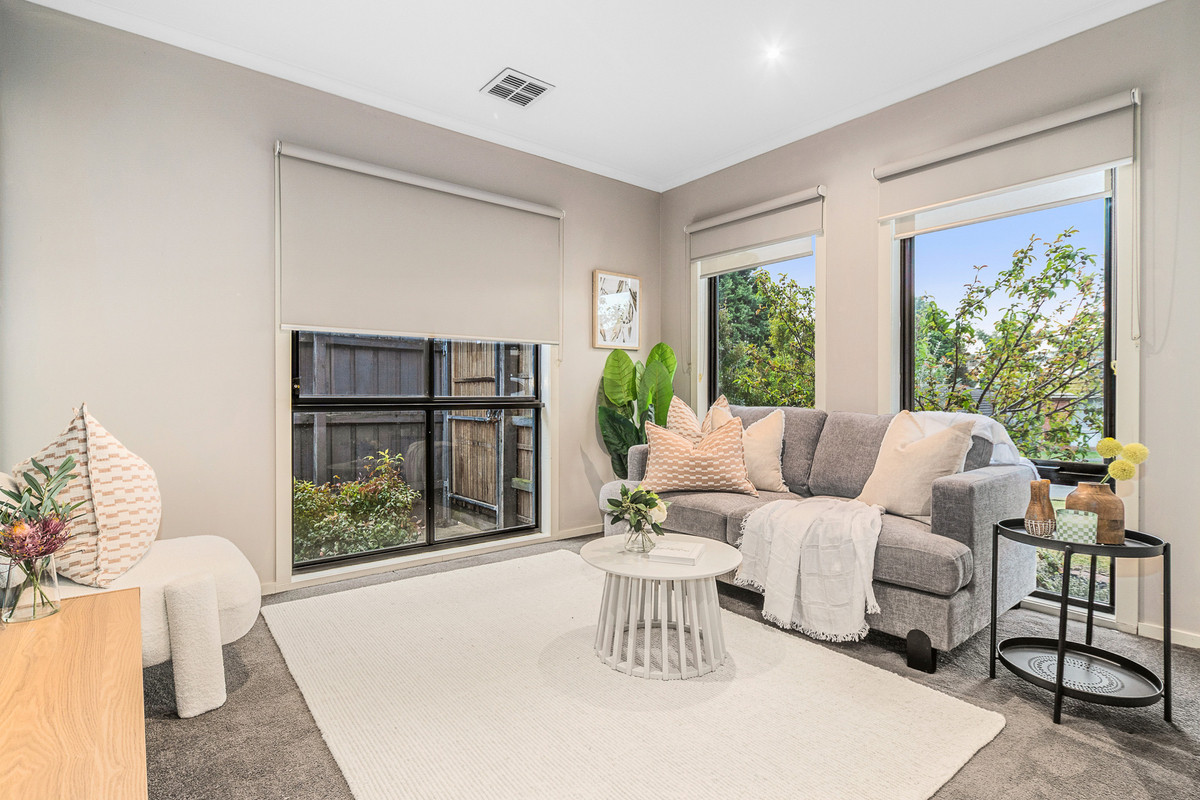 Boasting a north-facing orientation and a thoughtful layout, the home features a light-filled modern interior that stretches dual living zones, an open dining space, and a practical kitchen with ample bench space. A sun-drenched patio takes entertaining outside, while an established yard keeps privacy paramount. With internal access to the garage and an under-stair powder room finalising the ground floor, the three-bedroom accommodation spills above, featuring a master bedroom with walk-in robe and ensuite, and main bathroom complete with bath and separate shower.