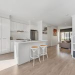 Simple sophistication shines inside, with open entertaining the focus of the ground floor. Sharing in elevated ceiling heights, a dedicated lounge with split-system heating and cooling unit stretches to both a bright dining space and wellappointed kitchen, where stainless steel appliances and an island bench with breakfast bar overhang provide practical facilities for the home cook. A step outside keeps entertaining alive under a cover alfresco, while low-maintenance gardens soften direct access to the double garage (accessed via rear laneway).