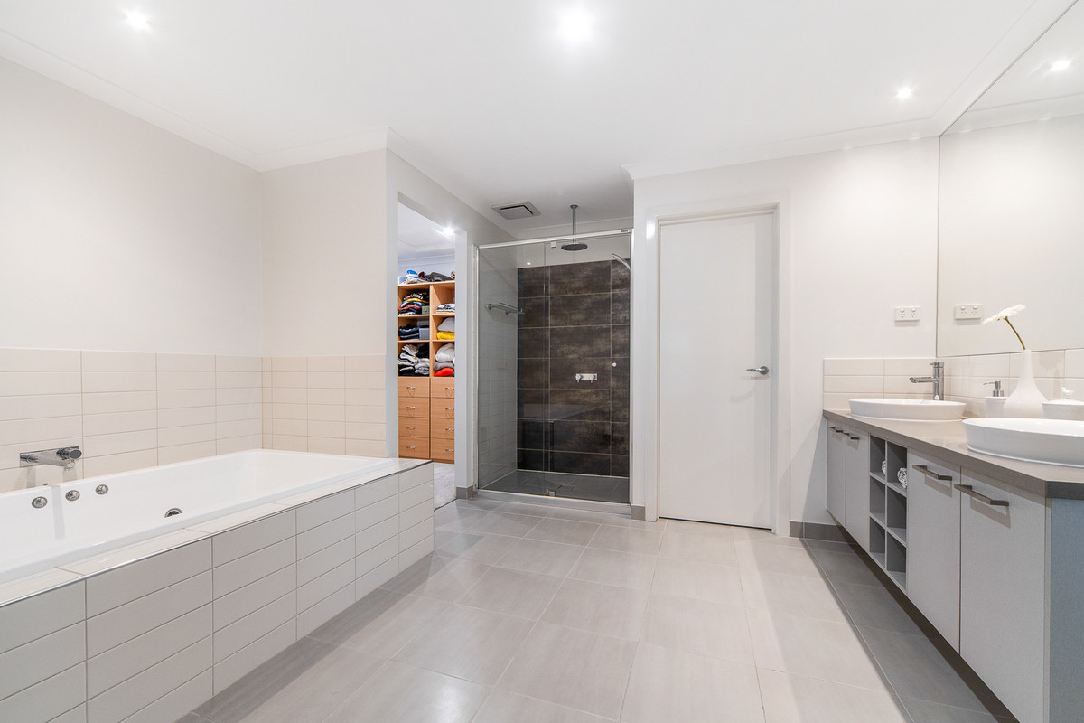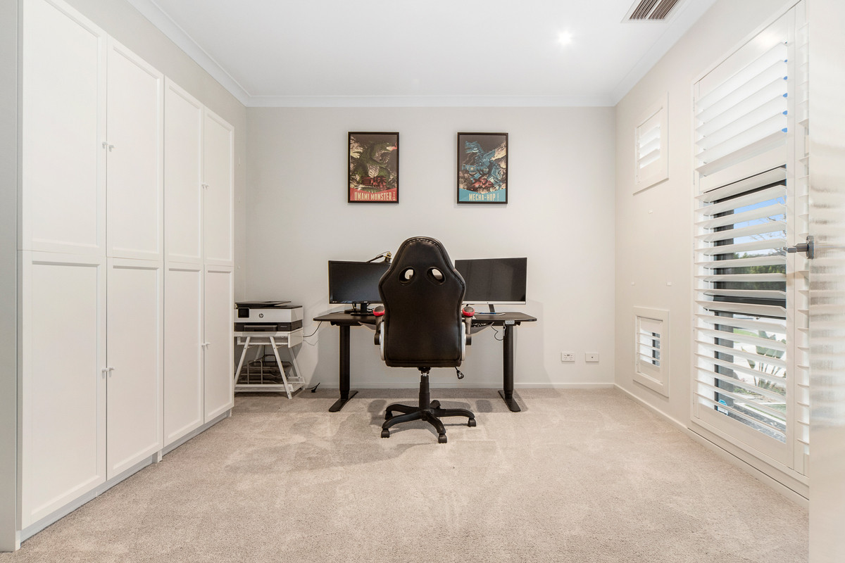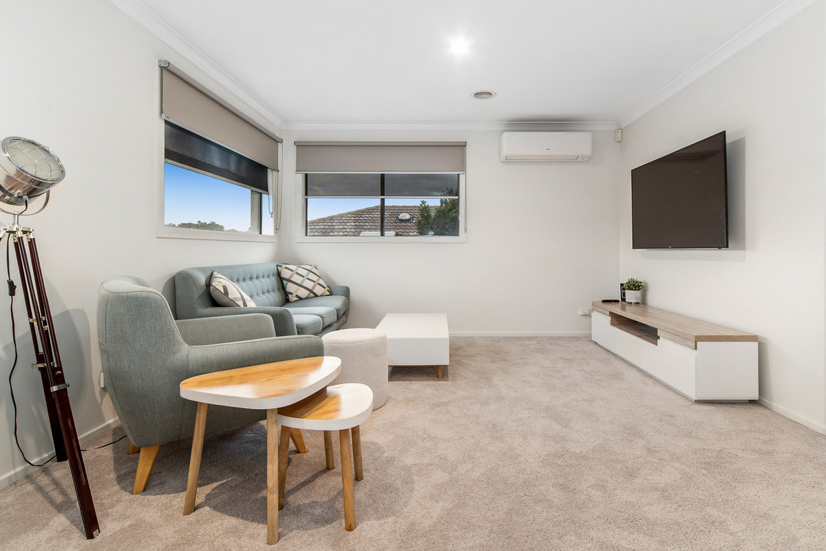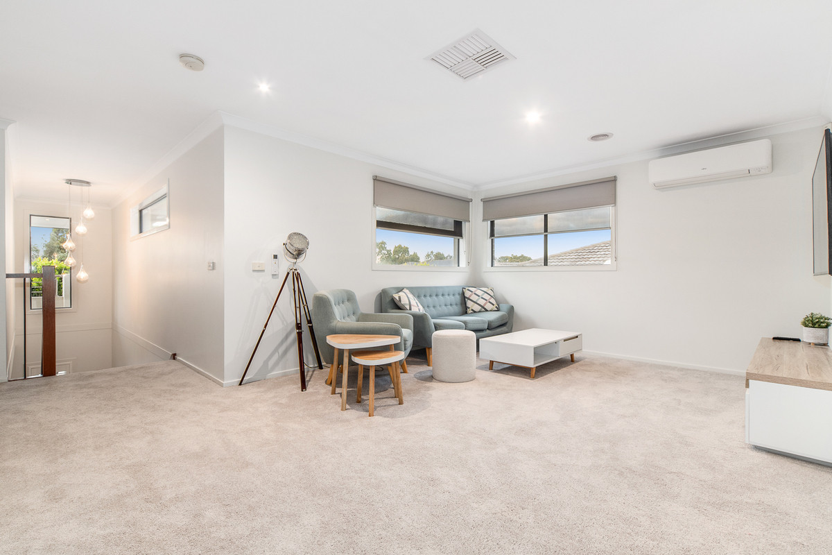 Four bedrooms and two bathrooms, including an impressive master bedroom with spa ensuite, provide generous accommodation for families alongside a first-floor lounge, perfect for the kids. A dedicated home office down below offers versatility as a potential fifth bedroom, with gas ducted heating, evaporative cooling, upstairs split-system unit, 5.475Kw solar power (15 panels), alarm system, ample storage throughout, ground-floor powder room, and a double garage further the appeal. Set across a 561sqm (approx.) corner allotment, just moments from golf courses, schools, shops, and major arterial access.