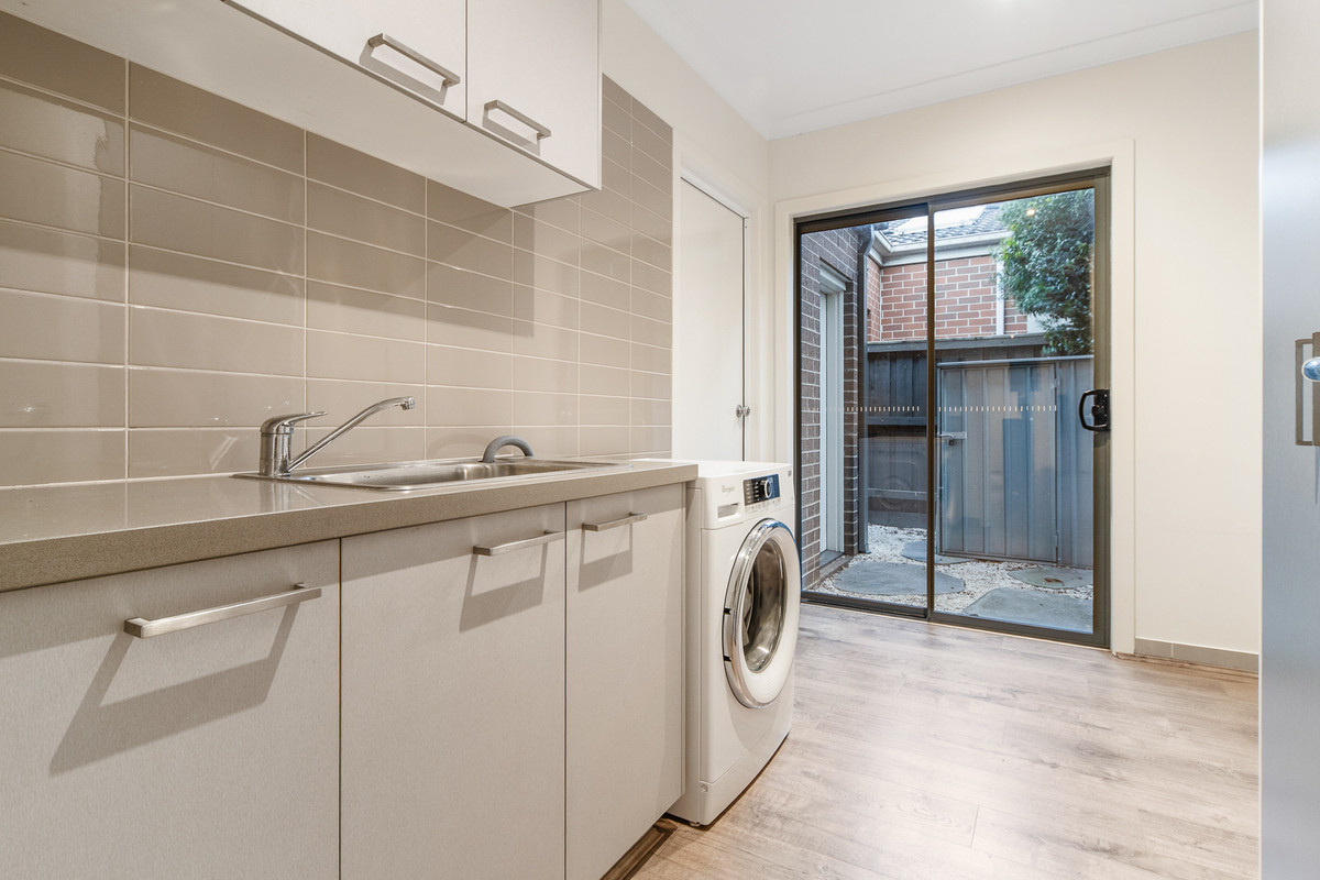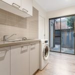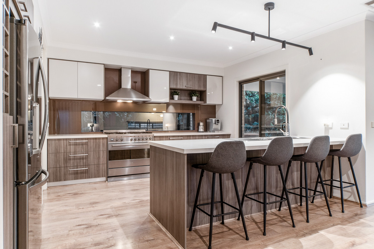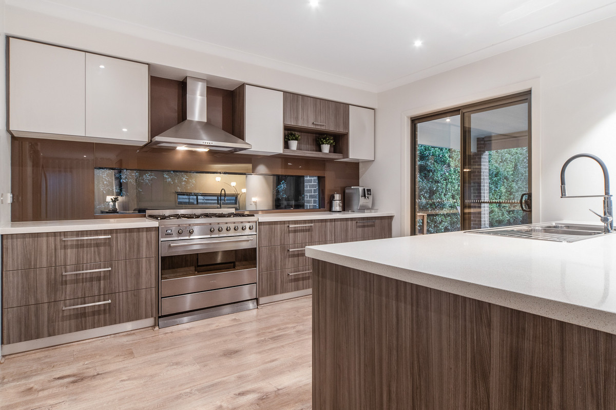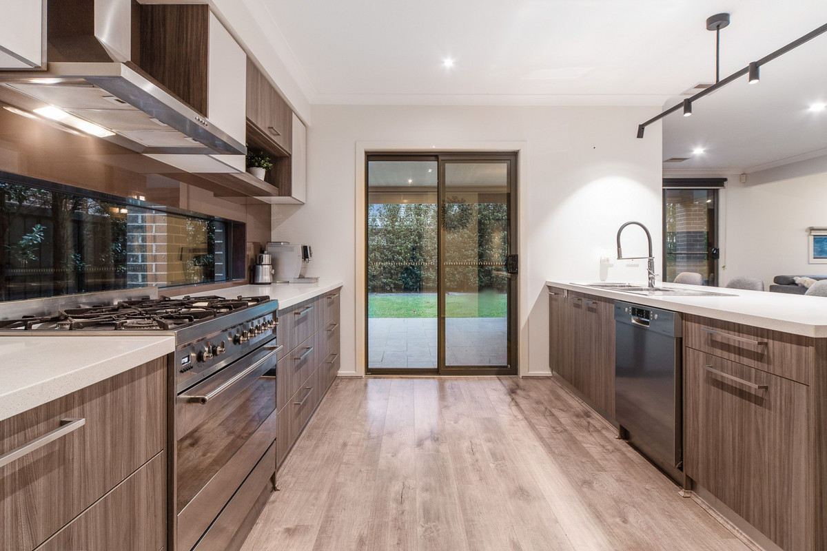 covered alfresco and secure rear yard, with striking stone benchtops, a 900mm Smeg cooker, and a walk-through pantry with direct laundry access, the perfect complement.